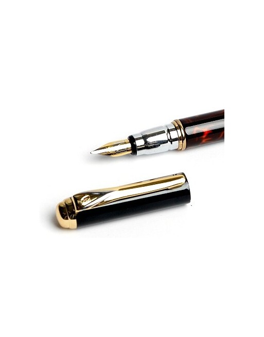 Celokovové tělo. Povrch černě lakovaný, doplňky ze žlutého kovu, úchop chromovaný. Vršek nasouvací, zajištěný manžetkou. Prstenec zdobený černobílým nebo černočerveným mramorováním. Vhodné pro menší až prostřední ruku.